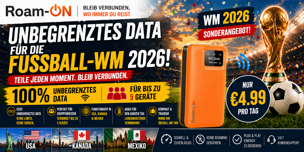 Unbegrenzte Daten für die Weltmeisterschaft 2026: Der beste Reise-WLAN-Hotspot für die USA, Kanada und Mexiko ⚽🌍